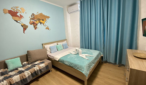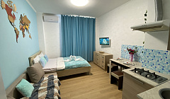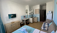 Сдаётся уютная студия в новом доме. В квартире имеется все необходимое для проживания и отдыха: 2-х местная кровать, раскладной диван Комод Кондиционер Телевизор Интернет, Wi-Fi Стиральная машина Холодильник Кухонная плита Эл.чайник СВЧ печь Утюг с гладильной доской Посуда Постельное белье и полотенца. Огороженный, тихий двор Бесплатное парковочное место Мангал