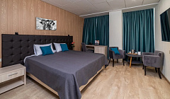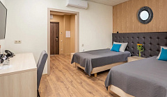 Номер чистый, большая кровать, белое свежее постельное белье. Есть холодильник, чайник, столик, открывается окно для проветривания. Большая душевая кабина, много чистых полотенец