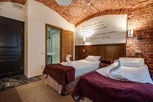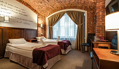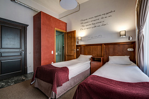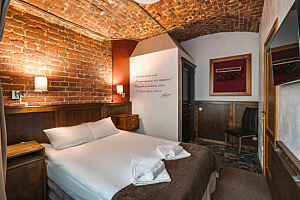 Отдыхаои в отеле семьёй с двумя детьми с 4 по 6 января. Номер маленький, но для отдыха после долгих зимних прогулок по зимнему городу этого вполне хватает! В номере чисто, уютно. Бельё и полотенца белоснежные, в номере всё было, что заявлено: и чайник, и посуда, и халаты, и тапочки, и наборы зубных щёток, шампунь+гель для душа, фен. Программа была насыщенная, в номер возвращались поздно вечером только поспать. В номере было тепло (а на улице морозы январские). Телевизор работал (прощелкали каналы ради интереса перед сном). У нас окна выходили во двор (номер 9), поэтому шума от улицы мы не слышали. Матрасы в номере вполне удобные+шторы блэк-аут+зимние прогулки =получился хороший крепкий сон, даже несмотря на колоссальную слышимость в номерах. Администраторы очень приветливые и отзывчивые, какая-то дополнительная помощь их не требовалась (никаких проблем у нас с номером не возникло), но всё равно приятно видеть их готовность помочь. Расположение идеальное, если хотите осмотреть достопримечательности в центре. Мы гуляли по Невскому, пешком ходили в Эрмитаж. Рядом есть и остановки общественного транспорта, и станции метро. Рядом с отелем много различных ресторанчиков и кафе (сложно определиться, где понравилнбоьше, каждый по своему хорош!). Завтракали от отеля в кафе "На парах" (вкусные, сытные завтраки), но как видят карточки от отеля, меняется отношение, сразу теряют интерес.