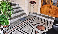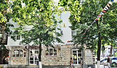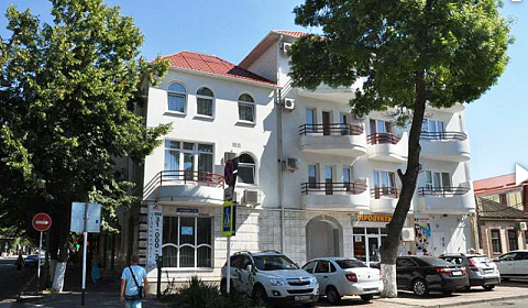 Расположен в центре города, в районе Театральной площади. Рядом находятся центральная набережная, морской вокзал, банк, городской пляж и детский парк со множеством аттракционов, платная автостоянка. К услугам отдыхающих аптека, магазины в шаговой доступности. До моря всего несколько минут. Расположение дает возможность пользоваться как галечным пляжем на Высоком берегу, так и песчаным лечебным пляжем.