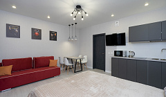 Комфортное проживание в новой студии , свежий ремонт , отличный ЖК . Приехала с ребенком , спокойно провели время , сначала не могла разобраться с бесконтактным заселением , но собственник апартаментов грамотно помог .