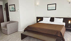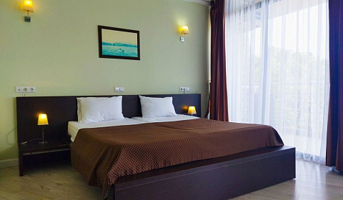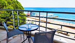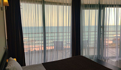 Предлагаем отдохнуть в 4-х звездочном отеле "АКВАПАРК" в комфортных апартаментах с панорамным остеклением. На открытом балкончике с чудесными видами на Черное море, сидя в удобных креслах, Вы можете утром наслаждаться горячим кофе, а вечером встречать закаты с холодным Крымским Шампанским!