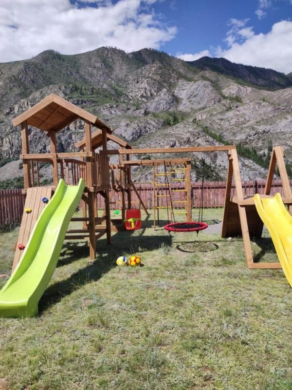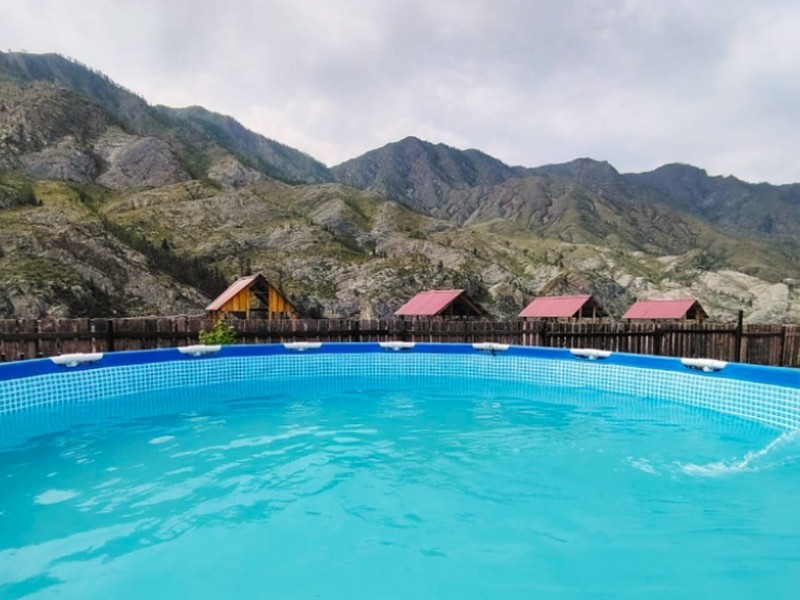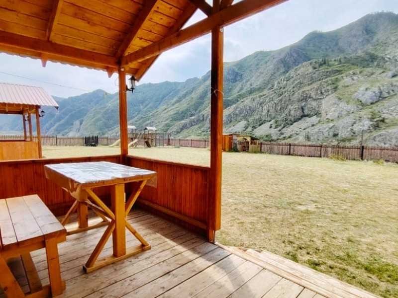Гостям предлагается общая летняя кухня, где можно приготовить пищу самостоятельно, беседки с невероятными видами на горы и реку Катунь, костровые, мангалы и бассейн.