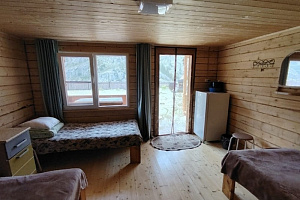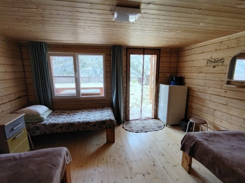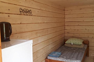 В домиках имеются вся посуда, холодильник, кровати, чистое глаженное белье и Wi-Fi по всей территории. Благоустроенный туалет и душ расположены на улице. Вода у нас питьевая со скважины