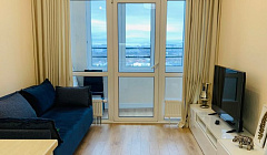 В апартаментах к услугам гостей: двуспальная кровать, шторы «блэкаут», раскладной диван, ЖК телевизор со Smart-TV, ванная комната с ванной и стиральной машиной, 2 вместительных шкафа-купе, кондиционер, лоджия с рабочим местом и видом из окна.