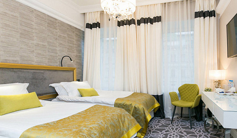 Чудесный небольшой отель! Расположен идеально для прогулок в самом центре города. В одном здании с отелем Золотой треугольник. Апартаменты на 4 этаже, есть лифт. У нас был номер маленький, но очень удобный для двоих, с видом на улицу и театр. От уличного шума не страдали, окна не открывали, так как в номере очень удобная приточная вентиляция с регулировкой температуры. В номере приятно находится, чисто, нет неприятных запахов. Хорошая большая кровать с удобным матрасом, хорошая сантехника, чайник, кофеварка, капсулы, чайные пакетики и т.д. Каждый день ставили новые бутылки с питьевой водой, пополняли шампуни, гели для душа, меняли полотенца. Вообщем, хозяева не жадничают, что очень приятно. Можно оставить чемодан и пойти гулять до заселения и после выселения. Огромное спасибо Алексею! Милейший человек!