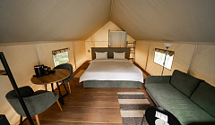 В глэмпингеОроктой Парк — это территория, свободная от социальных сетей. На территории не работает интернет, поэтому, обращаем ваше внимание, что оплата возможна только наличными средствами. В тентхаусах есть кровать king-size, душ с теплой водой, холодильник, чайник, посуда и обогреватели. Снаружи каждого тентхауса обустроена терраса с видом на реку и горы, а некоторые оборудованы персональными купелями с подогреваемой водой. Санузлы располагаются отдельно, в нескольких минутах пешком от тентхаусов.