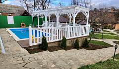 На берегу рек Белой и Аминовской, окруженный зеленью, небольшой уютный гостевой дом "Отдых у реки" на 13 номеров. К услугам гостей благоустроенный мангал, принадлежности для жарки мяса, деревянные обогреваемые беседки с телевизорами, круглогодичный бассейн с подогревом, русская баня на дровах, детская площадка, гамак и подвесные качели, бесплатная парковка, фруктовый сад и Wi-Fi. В гостевом доме "Отдых у реки" номера оборудованы телевизором, сплит системой, чайником, холодильником, микроволновой печью, необходимым набором посуды, в апартаментах имеется мини-кухня и мультиварка. В каждом номере большие балконы со столом и лавками, с прекрасным видом на реку. Ванные комнаты укомплектованы феном и туалетно-косметическими принадлежностями. Мы предлагаем нашим гостям начинать каждое утро с вкусного домашнего завтрака в нашем кафе, возможен полный пансион с заказом обедов и ужинов. Расстояние до реки Белой 10 метров, до речки Аминовской 5 метров. При необходимости можем организовать трансфер. Гостевой дом расположен вдали от шумной суеты. Но в тоже время все блага цивилизации находятся недалеко. Совершая пешие прогулки по ущелью Аминовскому или навесному мосту через реку Белая можно попасть в магазин, аптеку, кафе, рынок и туристические объекты «Хаджокская теснина», водопады «Руфабго» и ущелье «Мишоко». Если Вы приедете на машине или Вы по желанию закажете экскурсии, то можете посетить канатную дорогу «Затерянный мир», плато Лаго-наки, «Азишскую» и «Нежную» сталактитовые пещеры, монастырь «Свято-Михайловская пустынь», термальные источники, «Гранитный» каньон реки «Белой», поселок Гузерипль с музеем «Кавказкого биосферного заповедника» и дольменами , «Партизанскую и Яворову поляну», Гуамское ущелье. Для экстремалов сплав по реке, джиппинг, катание на квадрациклах, на санках и снегоходах, парк экстрима «Мишоко», конные прогулки. Ну а для любителей пеших прогулок все леса, горы и водопады у Ваших ног.
