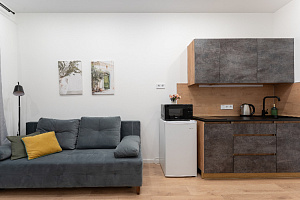 В квартире есть всё для комфортного проживания: • Комфортное место для сна и отдыха • Полностью оборудованная кухня (холодильник, плита, микроволновка, электрический чайник, вся необходимая посуда). • Быстрый и стабильный Wi-Fi. • Smart TV. • Стиральная машина, утюг, фен. • Свежее постельное белье и комплект полотенец.
