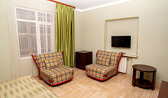 Стандартные номера по 8 номеров на этаже. Жилых 3 этажа. Итого 24 номера - мечта тех, кто любит тишину! Очень хорошие повара, вкусно и достаточно недорого. Завтраки бесплатные, обед и ужин можно заказать, составив своё меню. Городской транспорт - 19 р. До Сочи - 50 р. В магазинах ("Магнит") продукты дороже, чем в Москве, однако! Яндекс-такси всегда вовремя и бюджетно! Приеду с удовольствием ещё!