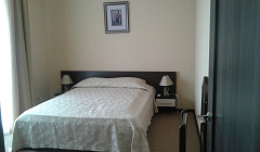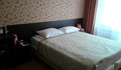 Номер соответствует фото, чистый, есть чайный набор, чайник, кулер на этаже, в гостинице тихо, в номере двойные двери, телевизор только маловат и окно наше выходило на задний двор и мусорку???? но мы в номере не сидели, нам было не принципиально, полотенец достаточно, есть холодильник, большое зеркало, кровать была двуспальная, но это два соединённых односпальных матраса, периодически съезжала в центр. Два одеяла, также полуторки.