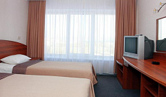 Мебель: односпальные кровати, прикроватные тумбочки, шкаф, стулья, вешалка, кондиционер, телевизор, кабельное ТВ, интернет, телефон