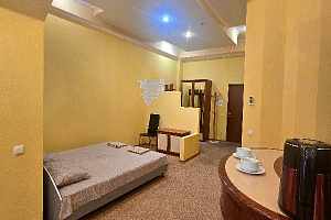 Мы предлагаем широкий выбор номеров — от уютных одноместных до просторных апартаментов, идеально подходящих для семьи или компании. Каждый номер оборудован собственной мини-кухней и всеми необходимыми удобствами для комфортного и независимого проживания.
