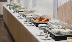 Everything is delicious. The choice is good. For breakfast, it would be good to add one more coffee machine to the hall.