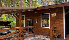 Возможна аренда банкетного зала для проведения мероприятий (до 25 человек) - 20000 руб./сутки. В помещении: кухня, камин, диваны, декоративные столы, стулья, 2 телевизора, Wi-Fi интернет, музыкальный центр Technics, терраса, туалет. Отделка - натуральное дерево, авторский дизайн, большие панорамные окна с видом на лес.