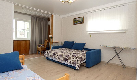 и другие удобства: стулья, тумбочки, шкаф, кровать двуспальная, кровать односпальная, детская кроватка, диван-кровать, журнальный столик, кухонный стол, обеденный стол, стол, вешалка, посуда В вашем распоряжении интернет Wi-Fi, парковка на улице перед зданием.