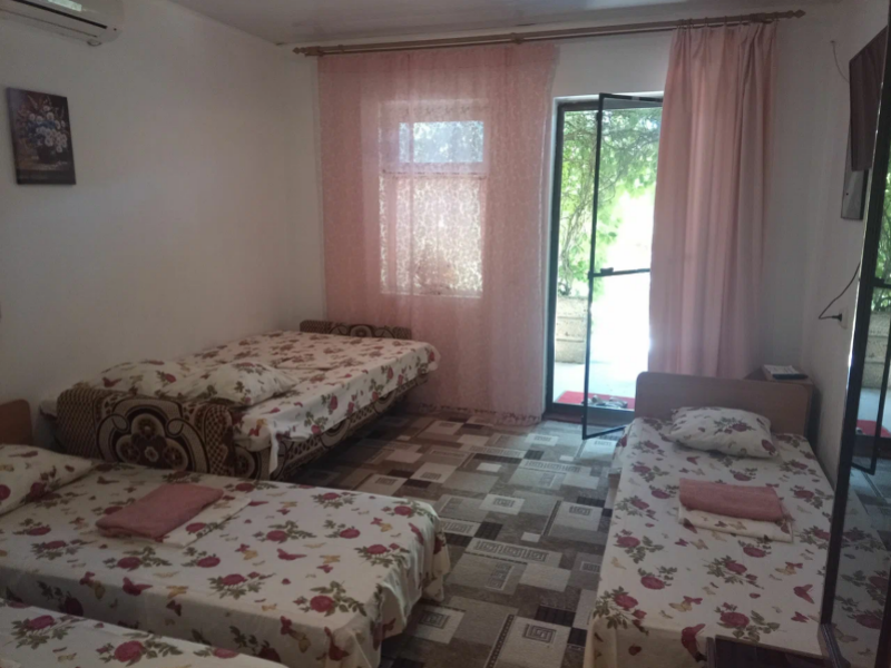 Вся территория гостевого дома охраняется. Снаружи установлены камеры видеонаблюдения. Вход во двор на кодовом замке. До пляжа 150 метров (5 минут ходьбы). Море теплое с пологим песчаным берегом и неограниченным пляжем. На берегу есть теневые навесы нашего гостевого.