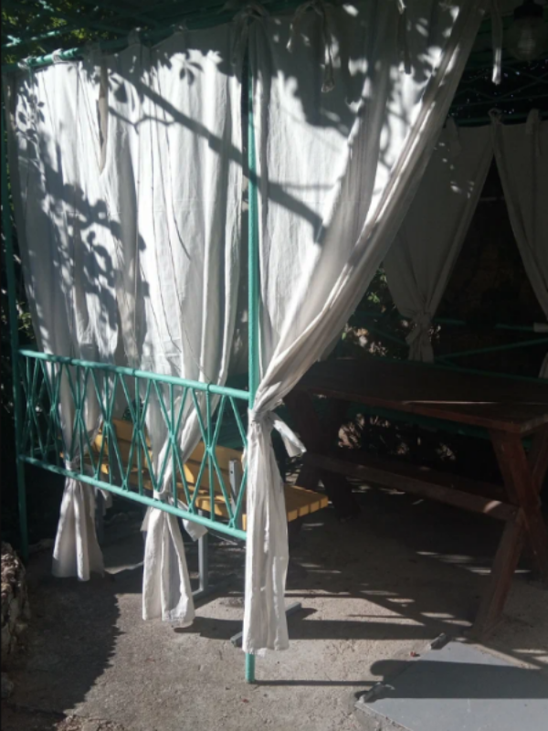 Каждый номер оснащен отдельным входом и своей верандой со столом в лианах дикого винограда. Рядом находится общая кухня для самостоятельного приготовления еды оснащенная газовыми плитами, раковинами для мытья посуды, большими дополнительными холодильниками с морозильной камерой, СВЧ, эл. чайником и кухонной посудой. Столовые приборы и посуда у каждого номера индивидуальная.