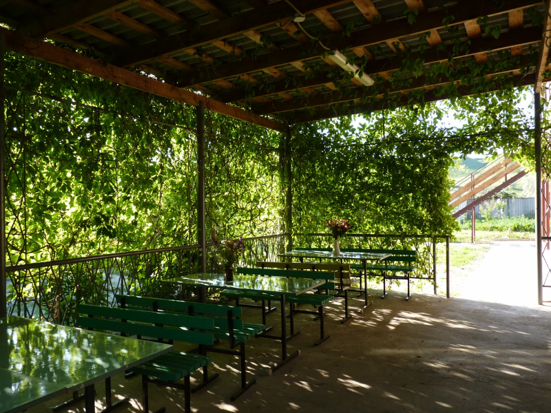 На территории имеются беседки для уединения, утопающие в тени из виноградных листьев и беседки-с мангальной зоной для застолья и пикников.