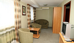 В номереВ номере гостей ждут телевизор и халат. Оснащение зависит от выбранной категории номера.