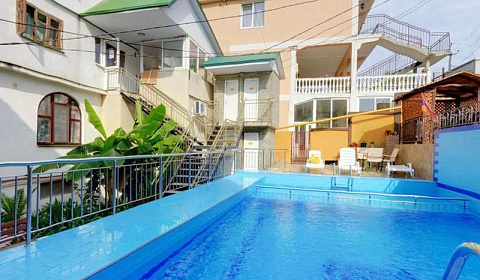 На территории гостевого дома к услугам гостей живописная зона отдыха с прекрасным озеленением вокруг бассейна (бассейн с подогревом) шезлонгами, беседка, столики у бассейна, также к услугам гостей бесплатный wi-fi.