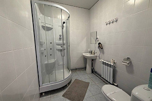 Наш номер оказался без своей ванной комнате. На фото номера она была и поэтому я не сильно присматривался к разделу "удобства в номере". К тому же площадь 30 кв.м. - вроде как хватает для своего туалета. Ну и по фото не заметил некоторые особенности номера. Не понимал, почему так недорого 4-местный номер стандарт. Оказалось, что наш номер в другом здании, где размещались процедурные кабинеты и, как я потом выяснил по фото в интернете, это тоже был процедурный кабинет. Его даже не переделали, а просто убрали перегородки. На стенах - кафель, на полу - старый линолеум со следами перегородок. Мебель простая, но новая, матрасы и белье новые, свежие, чистые. На окнах маскитные сетки. Плюс запах лизола в номере - не проветрился. В коридоре старый облезлый ламинат и какая-то подсобка по пути в общий туалет/ванную. Фото прилагаю. Попросил показать номера в основном здании - там намного лучше, особенно в номерах повышенной комфортности. Но свободных номеров не было, поэтому пришлось ночевать в том , что забронировали. Ну ы и не собирались сидеть в отеле - на природу приехали, ну и в бассейне покупались. Еще сходили в соляную комнату и приняли серные ванны на пробу.
