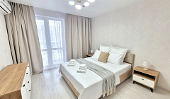 - Санузел: Современная ванная комната с ванной, феном, а также предусмотрены все необходимые туалетные принадлежности.