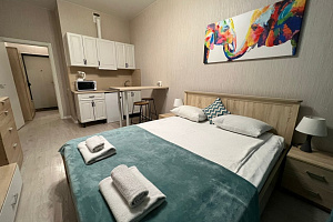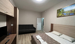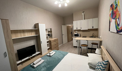 Удобное расположение аэропорт/метро. Приехали на час раньше, т.к. в номере было убрано уже, заселение прошло раньше без проблем. Заселение проходит очень удобно, девушка выдаёт ключи и показывает куда идти. Дом новый чистый, подъезд уютный. Снимали на 3 ночи, в номере было 2 комплекта полотенец, 2 мыла, 1 гель для душа, 3 шампуня, 1 зубная щетка с пастой, чистая новая губка и тряпочка для посуды, 2 пары тапочек одноразовых. Номер полностью соответствует фото. Тв, вай фай. 10 этаж, красивый вид. Соседей не слышно. Была раскладушка в номере, гладилка, сушилка, утюг, фен. В общем всем остались довольны, для путешествия оптимальный вариант, за такие деньги просто подарок, буду советовать вас своим друзьям)