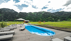 Да, на территории "Ранчо Техас" отель в с. Чепош (Чемал) есть: Бассейн под открытым небом