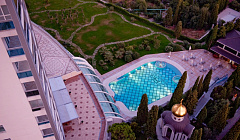 Мы проживали в двухместном номере Эконом(двуспальная кровать) для 2 гостей. Номер просторный, высокие потолки, приятный интерьер, пол в ванной с подогревом, вместительный шкаф, большая кровать с ортопедическим матрасом, большой балкон с видом на море и парк. Вежливый, услужливый персонал. Спа и джакузи на открытом воздухе. Вкусный завтрак в ресторане. Приотельная территория с парком и "живым уголком".