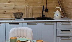 Двухэтажный А-фрейм в поселке ЭльбрусНа первом этаже: гостиная с большим диваном, телевизор, стол, мягкие стулья. Санузел, вся необходимая посуда, холодильник. На втором этаже: Две спальни - одна с двуспальной кроватью, другая с двумя односпальными кроватями. Качественное постельное бельё, подушки и одеяла, телевизор, большой шкаф. Санузел с большой душевой кабиной, полотенцами и средствами личной гигиены. Для удобства гостей в домиках имеются собственная уютная кухня, оборудованная холодильником, микроволновой печью, плитой, чайником. А также посудой, необходимой для самостоятельного приготовления на время отдыха (вилки, ложки, бокалы, тарелки, чашки и т. д.).2-комнатный Дом в базе отдыха «Red-Hills Elbrus» категории «Дом A-frame» капитальный ремонт «под евро» и кухня-столовая сдаётся на минимальный срок от 3 суток. Заезд после 14:00, отъезд до 12:00