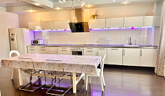 Всё как на фото. Джакузи, бассейн и сауна безлимит и без доплат. Шампуры были сразу, свои везти не нужно. Температура управляется в доме климатической системой. Наверху три огромных спальни, внизу еще кровать и на втором этаже еще кровать и огромный модульный диван. В общем, на четверых хватило с запасом :) Заселение в любое удобное время по предварительному согласованию, мы сами опоздали на полчаса)) Громких соседей не заметили, рядом небольшой магазин, в самой Кондопоге Магнит. Достаточно удобное расположение для поездки к Кивачу и Гирвасу. В общем рекомендуем однозначно, все было супер!