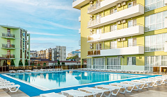 Отель позаботился о комфорте гостя и на пляже- собственная огороженная территория песчаного пляжа, который находится в 800 м от отеля. До пляжа курсирует автобус по расписанию. Пляж оборудован лежаками, теневыми навесами, душевыми кабинками и туалетом, спасательным и медицинским постом.