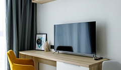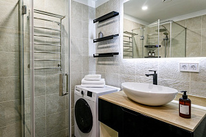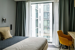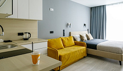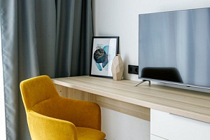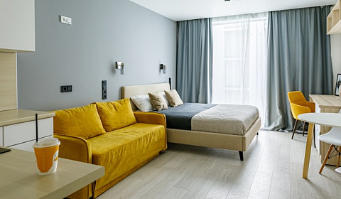 Комфорт и удобства: Для Вас есть всё необходимое для комфортного проживания:Удобная двуспальная кровать с ортопедическим матрасом и диван. Современный ЖК-телевизор для просмотра любимых программ и фильмов. Шкаф для хранения, рабочий стол с комфортным креслом; Полностью оборудованный кухонный гарнитур с электрическим чайником, микроволновкой, холодильником, духовым шкафом и всей необходимой посудой для приготовления, также обеденный стол и стулья. Собственный санузел, где есть ванная и туалет. Утюг и фен для вашего удобства, а также стиральная машинка, чтобы всегда иметь свежую одежду под рукой.