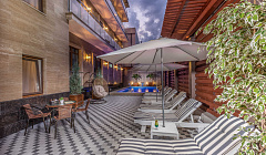 Отличная спа зона – джакузи и сауна.  Во дворе есть подогреваемый бассейн. Все чистое и сделанные на совесть.