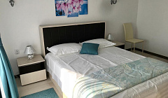 Расположение отеля просто отвратительное,нет никакой инфраструктуры,магазинов рядом нет чтобы что-то купить,точнее есть но я не считаю что это магазины, чтобы поесть нужно ехать в город который от отеля примерно в 3 км.пляжа нет просто его нет,какие-то не понятные коробки с насыпным песком,а около воды тина и в воде тоже все в тине,до моря 2 км,чтобы искупаться нужно спускаться по железной лестнице,вообщем не советую,с детьми вообще не вариант для отдыха.Отвратительно.А и ещё хозяйка отеля,просто отвратительная.