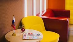 Лобби отделен от коридора ведущего в комнаты, есть гладильная доска с утюгом в закутке в коридоре (не надо бегать и просить). В коридоре и лобби есть куллеры с холодной и горячей водой, воду ставят в бутылках при заезде, в комнате есть чайник и пакетики чая, в лобби кофейник полный кофе, кофе растворимый и чай. Для меня это очень важно, и такое количество воды в разных вариациях для меня было большим счастьем. В лобби можно так же разогреть свою еду, мы не рассчитали объем желудков и часть заказа в ресторане забрали с собой. В номере есть холодильник, в лобби микроволновка, тарелки столовые приборы и стоят столы, а значит не надо тащить еду в номер. Мы прекрасно пообедали.