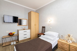 В номере 2 розетки, одна под холодильник, вторая под телевизор, это минус. Ну и наверное отдельно хотелось бы выделить администратора,из-за которой я снижаю рейтинг. В отеле действует система, что ночью калитка на вход закрывается (чтоб плюс к безопасности гостей) и чтоб попасть в отель нужно позвонить администратору и тебе откроют калитку. В один из дней я поздно возвращалась в отель, собиралась звонить по номеру, но увидела администратора около ресепшн, она неспешно вышла к калитке и крайне в хамской форме сказала мне " ну и сколько будет продолжаться эта беготня"..я как бы честно прифигела от такого. Имени данного сотрудника я не знаю, но у нее светлый цвет волос. Это неприемлемое общением гостями, учитывая правила отеля. Либо выдавайтегостям магнитные ключи, либо обучите свой персонал не хамить. Очень испортилось впечатление о поездке из-за этой дамы.