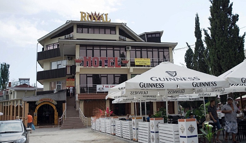 Приглашаем Вас отдохнуть в городе Судаке в отеле "Royal". Наш отель находится вначале Кипарисовой аллеи в 5-и минутах ходьбы до моря. Отель построен в 2008 году, реконструкция 2013 года. К услугам гостей предлагаем современные уютные номера c удобной мебелью, кондиционером, холодильником, телевизором. В каждом номере современная ванная комната с душем (душ или душ+ванная). Холодная и горячая вода круглосуточно. Также для наших гостей предлагается: бесплатный Wi-Fi, кафе, ресторан, интернет кафе, салон-парикмахерская, пункт обмена валюты, экскурсии, магазины. Мы будем рады видеть Вас и поможем сделать Ваш отдых незабываемым.