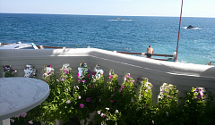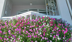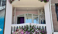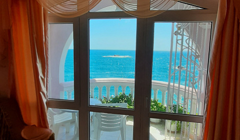 Отдыхали в эллинге 104 Розовая жемчужина в начале сентября. Выбрали совершенно случайно, но попали в самую точку. Это самые красивые балконы во всем п. Утес , единственные балконы с шикарными цветами. Спасибо за такую красоту хозяйке Ольге Михайловне. На этом красивом балконе встречали сказочные рассветы, любовались лунной дорожкой. В номере есть все необходимое- холодильник, чайник, посуда, телевизор, фен. Так же на 2-ом этаже есть кухня. Все очень чистенько и комфортно. До моря два шага, пляж галечный ( очень удобный заход), Находится в самом центре первой линии Утеса, что очень удобно. Большое спасибо за комфортный отдых Олечке. И наилучшие пожелания ее большой семье. Лена, Юра.