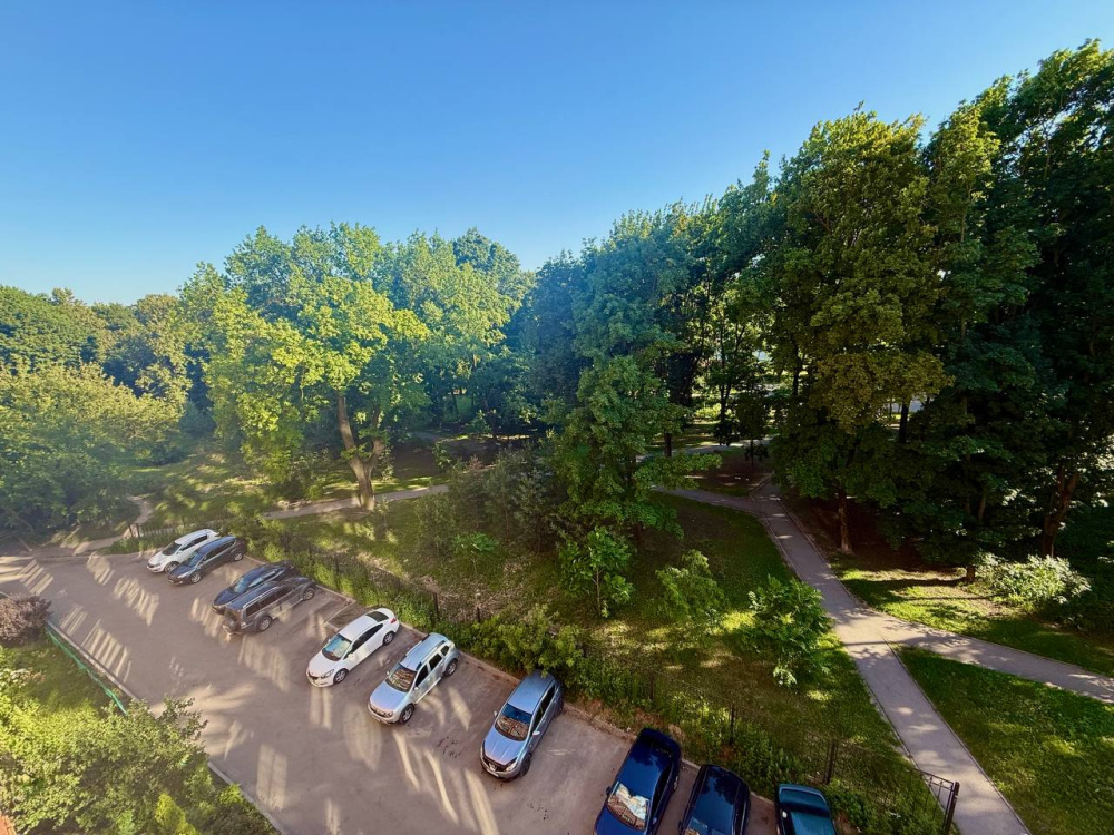 Тихо. Под окнами парк с детской площадкой.