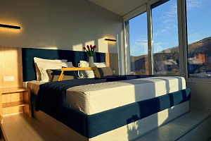 ВИД, ОТ КОТОРОГО ЗАМИРАЕТ СЕРДЦЕ! Апартаменты Goodwill на 7 этаже с панорамой моря и гор Ваш идеальный отдых начинается здесь: Всего 3 минуты пешком до экологически чистого моря с мелкой галькой. Никаких толп, только тишина, кристальная вода и рассветы, которые хочется сохранить навсегда. Из окон — лучший панорамный вид во всем Агое: море прямо под ногами, горы в дымке, а вы — главный зритель этого зрелища. Пространство для 5 гостей без компромиссов: → 2 двуспальные кровати 160×200 и 180×200 с новым ортопедическим матрасом и премиум-бельем → Кресло-кровать для 5-го гостя (ребенка или взрослого) → 2 кондиционера и 2 телевизора — каждый найдет свой уголок для отдыха → Полностью оборудованная кухня — готовьте сами, как дома, без зависимости от кафе → Совмещенный санузел со стиральной машиной и свежим ремонтом Почему именно эти апартаменты? ✓ 7 этаж с видом мечты (лифт до 5 этажа, последние 2 этажа пешком — но поверьте, ради такого вида это того стоит!). ✓ Бесплатная парковка на территории комплекса — в сезон мест может быть ограничено, но рядом с пляжем есть удобная платная парковка всего в 2 минутах пешком от комплекса. Ваш автомобиль всегда будет в безопасности! ✓ Тихий семейный район — никакого шума, только крики чаек и шум прибоя. ✓ Отличная столовая прямо на пляже — завтракайте под шум волн, ужинайте под звездами. Вкусно, недорого, без спешки. ✓ Все необходимое в 5-7 минутах: магазины, аптеки, кафе. Условия, которые уважают ваш комфорт: Бесконтактное заселение — получите код от квартиры в WhatsApp, никаких очередей. Залог 5000 ₽ — возвращаем полностью после проверки. Гибкие заезд/выезд — обсудим индивидуально (стандарт 15:00/12:00). Онлайн-администратор — помощь 24/7, даже если сломался чайник в 23:00. Путеводитель по Агою в подарок — секретные пляжи, проверенные места, где туристы не бывают.