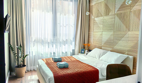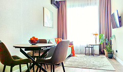 Ваш московский эко-ретрит. Заселяйтесь бесконтактно. Умный замок откроется по коду. Слейтесь с природой, не выезжая из ВАО и Петровской старины. Почувствуйте, как замедляется время. Забудьте про шум мегаполиса за панорамным окном. Это не просто квартира на сутки — это ваш личный заповедник в сердце Москвы. Мы создали пространство, где можно перезагрузиться, вдохнуть полной грудью и восстановить силы. Вас ждёт уникальный эко-дизайн в умиротворяющей палитре шалфея, дубовой коры и тёплой земли. Погрузитесь в атмосферу природной гармонии: Дышащие стены и тактильный комфорт. Не краска и гипсокартон, а натуральные декоративные обои, текстуры дерева и льняного полотна. Хочется прикоснуться. Энергия живых растений. Пространство оживляют фикусы, монстеры и вьющийся плющ. Это не просто декор, а ваши молчаливые соседи, очищающие воздух. Пробуждение всех чувств. Утром вас будит не будильник, а солнечный свет, играющий на деревянных поверхностях. Вечером — глубокий, спокойный сон в спальне цвета лесной тени. Осознанный минимализм. Всё продумано до мелочей: мягкий ковёр, плетёные покрывала, приятные безделушки. Ничего лишнего, только то, что радует глаз и душу. Технологии с экологичной душой. Вся техника — энергоэффективные модели класса А++. Слышно только пение птиц за окном, а не гудение приборов. Идеально для: → Ценителей осознанного отдыха и йоги. → Творческих людей, ищущих вдохновение. → Той самой пары, что хочет уединения в особенном месте. Ваш московский эко-сценарий ждёт вас: Забронировать уединение. Перезагрузиться. И насладиться жизнью. В квартире сделан дизайнерский ремонт с качественной отделкой и мебелью. Внутри есть все, что нужно для комфортной жизни: абсолютно новая кухня со встроенной техникой, кондиционер в комнате, телевизоры, большая двуспальная кровать, шкаф во всю стену в прихожей и спальне. Комплекс располагается в современном развитом районе с магазинами, кафе, салонами красоты, фитнес-центром, рядом есть школа, детский сад, поликлиника, детские площадки.