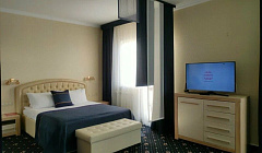 - двухкомнатный люкс (10 шт.): гостиная с телевизором, телефоном, холодильником и мягкой мебелью (диван - дополнительное место), спальня с двуспальной кроватью, туалет + биде + угловая ванна.