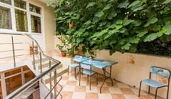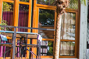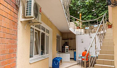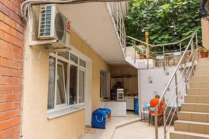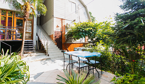 На террасе, расположенной среди пальм, инжира и хурмы, можно отдохнуть семьёй или дружной компанией. На всей территории гостевого дома работает Wi-Fi. В шаговой доступности есть продуктовые магазины, которые работают круглосуточно. Есть бесплатная и платная автостоянки, кафе, столовая, аптеки, остановка автобуса и Ласточки до Сочи.