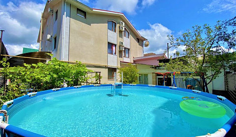 На территории гостевого дома, закрытой и охраняемой, есть все для полноценного семейного и индивидуального отдыха. Стоянка на 6 автомашин, детский бассейн, теневые навесы, просторная терраса для приема пищи, солярий с живописным видом на горы, барбекю для приготовления шашлыка, овощей и т.д., кухня для самостоятельного приготовления пищи. Созданы хорошие условия для игры в настольный теннис. Организован детский уголок с играми, книгами, красками, конструкторами и т.д., здесь же установлен видео-проектор для трансляции детских программ на большом экране и свежем воздухе. Это же оборудование используется для подвижных электронных игр и для просмотра вечерних программ для взрослых, футбольные матчи и т.д. Имеется доступ в интернет по беспроводной сети Wi-Fi.