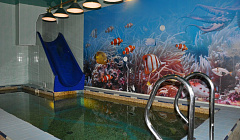 Среди развлечений на территории — караоке, развлекательные мероприятия, библиотека и площадка для барбекю. Здесь будем баловать себя водными процедурами: есть бассейн и крытый бассейн. Чтобы забронировать экскурсию, обратитесь в экскурсионное бюро отеля. Любимца не придётся оставлять дома: разрешается бесплатное проживание с питомцем.