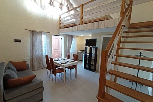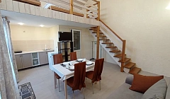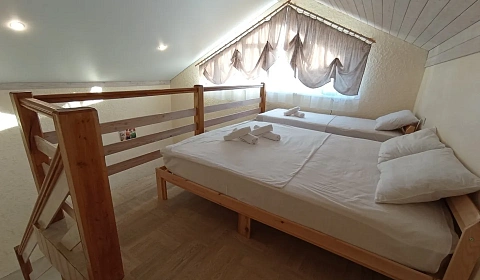 Гостиничный комплекс "Complimente". Предлагаем для Вас семейный отдых на самом западном курорте Крыма, расположенном на мысе Тарханкут (Караджинская бухта). Тарханкут является Национальным заповедником Крымского полуострова. Оленевка знаменита самым чистым морем, захватывающими дух скалами и белоснежными песчаными пляжами. Песчаный пляж "Майами", Скалы: Большой и Малый Атлеш, Джангуль, Очеретай, естественный бассейн в скале Чаша Любви, местный парк активного отдыха Экстрим Крым сделают ваш отдых незабываемым, а фотографии неповторимыми. В нашем предложении следующие варианты для комфортного отдыха: Отдельно стоящий двухуровневый дом, площадью 50 кв. м. , с собственной кухней и санузлом. Размещение рассчитано на 4-6 человек. Полное оснащение всем необходимым для комфортного пребывания. Пребывание с животными возможно по предварительному согласованию. Горячая и холодная вода круглосуточно. Во дворе в бесплатном пользовании гостей автопарковка, беседки, мангалы, детская игровая зона, качели, песочница. Год всех построек 2021. Ближайший песчаный пляж "Майами" на расстоянии 1, 0 км. Береговая территория обустроена (спасательная служба, ограничительные буйки) и оснащена пляжным оборудованием (кабинки для переодевания, шезлонги, навесы), функционируют комплексы развлечений и кафе. Частный дом косметический ремонт и отдельная кухня сдаётся на минимальный срок от 1 до 3 суток. Заезд после 14:00, отъезд до 12:00