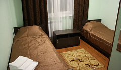 Мы заранее забронировали номер "эконом-класс" с двумя раздельными кроватями. В день заезда нас с мужем встретили доброжелательно, и персонал к нам был внимателен,вежлив. Нам понравилось, что гостиница работает круглосуточно, на первом этаже есть кафе-ресторан, где можно было перекусить. Вечером спокойно,тихо, даже не смотря на то, что рядом проходит проезжая дорога. Кровати широкие и удобные. Чайник был предоставлен, когда захотели попить чай. Завтрак в кафе-ресторане был вкусным.Мы остались довольными.