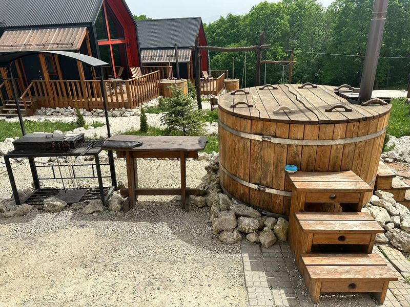 ЯПОНСКИЕ КУПЕЛИ ФУРАКО И ПОДОГРЕВАЕМЫЙ БАССЕЙН. Особенностью нашей базы отдыха являются японские купели Фурако. Погружение в горячую воду под открытым небом, в окружении горных пейзажей, - это невероятный опыт, который поможет вам расслабиться и восстановить силы. Кроме того, для любителей водных процедур у нас есть подогреваемый бассейн, где можно